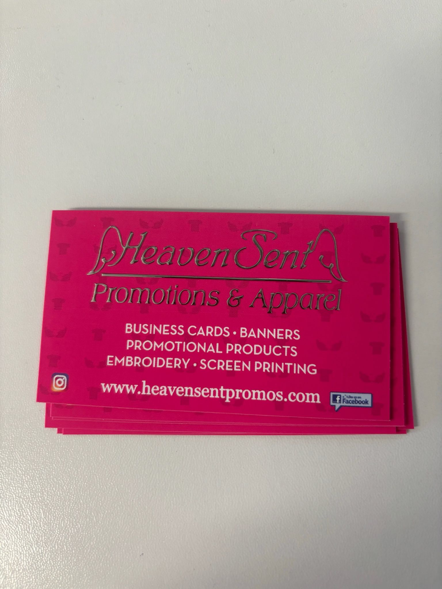 At Heaven Sent Promotions, we are capable of doing just about anything, including Spot Gloss, Foil Print, Emboss and Bevel, Die Cut, Carbon Copy Forms, and many other types of printed items.